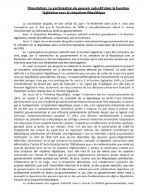 Dissertation: La participation du pouvoir exécutif dans la fonction législative sous la cinquième République