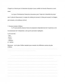 Remarque : voir le plan d’affaire standard pour connaitre les différentes sections du plan d’affaire.