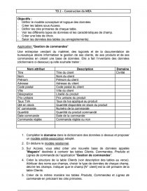 Une entreprise vendant du matériel, des logiciels et de la documentation de bureautique désire informatiser la gestion de ses clients, de ses produits et de ses commandes en créant une base de données. Elle a fait l’inventaire des données (dictionnaire ci-dessous) qu’elle souhaite traiter :