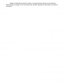 Premièrement, nous pouvons voir que dans tout l'extrait, les sentiments d'Herbillon sont exprimés. Il appréhende tout d'abord l'arrivée de Denise à qui il n'a pas montré un signe de vie depuis quelques temps :«réfugié dans sa chambre» (l.144), «son corps enveloppé à demi d'une matière molle, épaisse et brûlante» (l.146). Il n'arrive ainsi pas à cacher son angoisse et son anxiété et en arrive même à ne plus pouvoir bouger: «il lui était impossible de déplacer, fût-ce d'une ligne, ses membres pétrifiés» (l.149), «paralysé d'une terreur hypnotique» (l.165). Il est alors figé et pétrifié. L'arrivée de Denise va même jusqu'à obseder et ronger le jeune Herbillon: «ses pensées qui tournaient dans un cercle infernal» (l.147), «l'obsédait, le détruisait» (l.148), «il ne pouvait sortir d'un réseau d'images exigu jusqu'à la démence et circonscrit par deux noms dont il était hanté. Hélène... Denise...» (l.150). Ses pensées sont alors réduites, limitées au prénom de cette femme, dont «les mêmes syllabes martelaient son esprit, et des traits affreusement connus, affreusement chers, se déformaient, disparaissaient et renaissaient sans cesse devant ses yeux» (l.155). Ces mots nous font alors comprendre qu'Herbillon ne voit que par elle. Le désarroi et l'inquiétude du jeune aspirant se font donc clairement voir dans ce début d'extrait, mais lorsque Denise entre dans la pièce et qu'Herbillon l'apperçoit enfin, il est pris d'«un soulagement presque miraculeux» (l.162), la délivrance est ainsi éprouvée. L'heure de la confrontation a sonné et pourtant, Herbillon semble rester inactif et inébranlable face aux paroles de Denise: «la regardait avec fixité» (l.186), «son visage demeurait immobile» (l.201). Derrière cette image impassible, Herbillon est malgré tout frénétique. Après les paroles de Denise, il est d'ailleurs dit qu'Herbillon «s'était pénétré de leur accent net, rapide et sauvagement martelé» (l.203). Il idolâtre et adule alors cette femme d'où il ressent «une volonté sans contrôle autre que celui de la passion, une exigence obstinée, insatiable, barbare par son intégrité» (l.204). En conséquence, il en finit par être désorienté, voir même perdu. Pour finir, dès lors que la confrontation fût terminée, Herbillon «sentit qu'il n'avait plus ni force ni point d'appui» (l.250), il se sent ainsi vidé et usé, ce qui finit par être le résultat de toute l'exhaltation qu'il a éprouvé depuis le début de l'extrait.