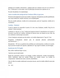 Maladie rare du développement cérébrale (fille) à partir de 18 mois leur développement régresse (marche, parole, interaction sociales, ne suis plus les gens du regard stéréotypie manuelle…), puis troubles respiratoire et cardiaques (troubles de la déglutition) crises convulsives. Origine génétique de la maladie, chromosome x, apparait après les 6 premiers mois de vie et avant les 2 ans. L’enfant peut vive des années, mais les pathologies diminuent leur espérance de vie.
