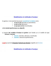 La plupart des modèles d’analyse en gestion sont fondés sur un modèle de type intrants / extrants