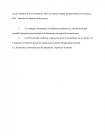 - Un diagnostic interne (Des ressources internes) pour identifier l’atouts concurrentiels de l’entreprise. (Analyse des ressources internes et les compétences de l’entreprise afin d’identifier les forces et faiblesses.