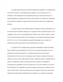 On est dans le Rpré américain face à une séparation stricte des pouvoirs, donc conséqueces, un congrès investi d'attributions importantes, celles-ci ont pour justification la séparation stricte des pouvoirs mais aussi la recherche de l'équilibre des pouvoirs, c'est la raison pour laquelle le président des US va rencontrer en face de lui un deuxième pouvoir puissant càd le congrès.