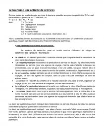 Le tourisme une activité de services