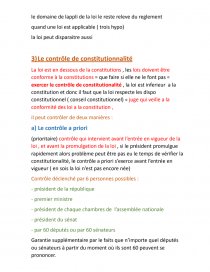 Fixe les règles et les principes qui sont fondamentaux pour le fonctionnement de l’État , recueil de textes , de lois fondamentales qui visent l’organisation de l’État et son fonctionnement , regroupe règle du pouvoir judiciaire , législatif ( parlement) , exécutif. ( gouvernement)