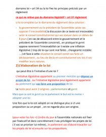 la loi fixe également les règles concernant : domaine des grands principes , on a une liste des choses exclusivement régis par la loi et là ou la loi fixe des principes , ces principes vont devoir être précisés par des règlements ( les détails de l’application de loi vas être préciser par le règlement)