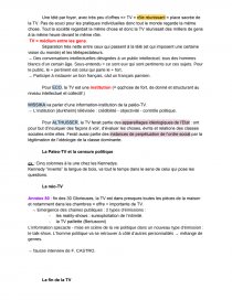 Pour ALTHUSSER, la TV ferait partie des appareillages idéologiques de l’Etat : ont pour but d’inculquer des façons à voir, d’évaluer les choses, évnts et relations des classes sociales entre elles. Ferait aussi partie des instances de perpétuation de l’ordre social par la légitimation de l’idéologie de la classe dominante.