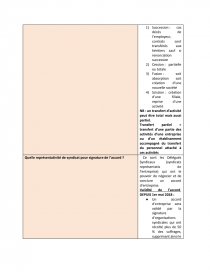Impact sur les mandats ? | Dans le cas d’un transfert d’ent, les mandats subsistent pour les Représentants du personnel jusqu’aux prochaines élections à condition qu’il y a une entité économique autonome et donc acti poursuivie ou reprise. Cas contraire = mandats non maintenus mais les salés demeurent protégés 6 mois pour élus et 12 mois pour DS ou RSS |