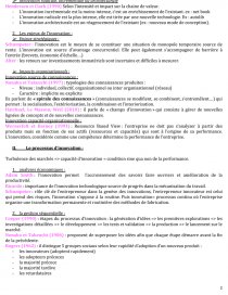 Schumpeter : l’innovation est le moyen de se constituer une situation de monopole temporaire source de rente. L’innovation est source d’avantage concurrentiel. Elle peut également s’accompagner de barrière à l’entrée (brevets, économie d’échelle…)