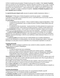 - Les précautions liées au matériel : il faut un matériel adapté au degré de dépendance, il faut contrôler le fonctionnement, tarer le système de pesée et utiliser la même balance pour une même personne.