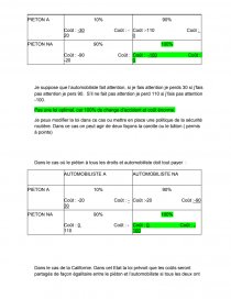 - S’il y a un accident, il ya une victime : le piéton. Les dommages corporels par la victime sont estimés à 100. Cette somme est un coût pour le piéton. Suivant la loi en vigueur le piéton pourra ou non se faire rembourser cette somme par l’automobiliste (son assurance).
