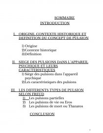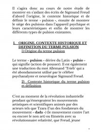 Il s’agira donc au cours de notre étude de montrer en s’aidant des écrits de Sigmund Freud d’abord l’origine, le contexte historique et de définir le terme « pulsion », ensuite de montrer le siège des pulsions dans l’appareil psychique et leurs caractéristiques et enfin de montrer les différents types de pulsion existantes.