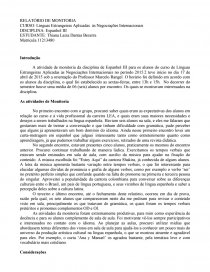 Fiche : RElatório de Monitoria. Recherche parmi 303 000+ dissertationsPar Thiana Bezerra • 25 Octobre 2015 • Fiche • 588 Mots (3 Pages) • 719 Vues