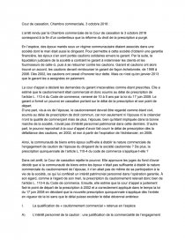 L’arrêt rendu par la Chambre commerciale de la Cour de cassation le 3 octobre 2018 correspond à la fin d’un contentieux que la réforme du droit de la prescription a purgé.