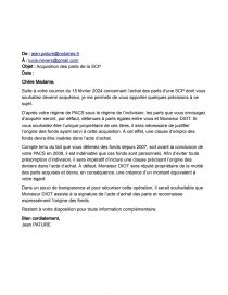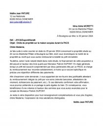 Je fais suite à votre courrier en date du 25 janvier 2024 concernant la propriété située au 24 rue du Maréchal Pétain à Boulogne-sur-Mer, dont vous revendiquez la moitié de la propriété au motif que vous auriez remboursé la totalité du prêt immobilier.
