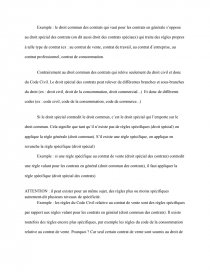 Exemple : si une règle spécifique au contrat de vente (droit spécial des contrats) contredit une règle valant pour les contrats en général (droit commun des contrats), il faut appliquer la règle spécifique (droit spécial des contrats)