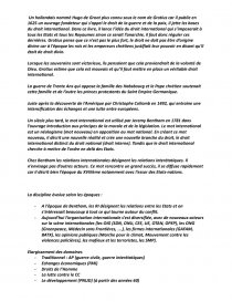 Un hollandais nommé Hugo de Groot plus connu sous le nom de Grotius car il publie en 1625 un ouvrage fondateur qui s’appel le droit de la guerre et de la paix, il jette les bases du droit international. Dans ce livre, il lance l’idée du droit international qui s’imposerait à tous les Etats et tous les Royaumes sinon ce serait l’anarchie, il faut donc réguler ces dernières. Grotius pense que ce n’est pas le plus fort, le droit ne doit pas être d’origine divine car à l’époque les rois et les empereurs chrétiens justifiait leur pouvoir en disant qu’il était de droit divin.