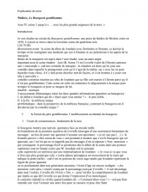 important pour la scène étudiée : Acte III, Scène 13 où Covielle (valet de Cléonte) annonce une « mascarade », cad une comédie de masques ; la situation est donc qu’on joue une comédie dans laquelle le protagoniste croit qu’il s’agit de la réalité, car « avec lui on peut hasarder toute chose, il n’y faut point chercher tant de façons, et il est homme à y jouer son rôle à merveille »