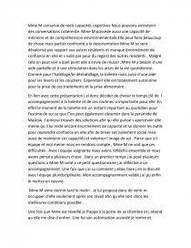 J attend sa réponse toujours en souriant. Une fois que Mme M est bien réveiller je lui explique pourquoi je suis la . Et lui notifie, que si elle veut bien je souhaite l accompagner dans sa toilette quotidienne.