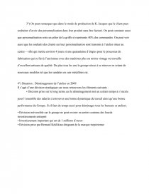 3°) On peut remarquer que dans le mode de production de K. Jacques que le client peut souhaiter d’avoir des personnalisation dans leur produit sans être facturé. On peut constater aussi que personnalisation reste un pilier de la griffe et représente 40% des commandes. On peut voir aussi que les souhaits des clients sur leur personnalisation sont transmis à l’atelier situer au centre – ville qui mettra environ 4 jours et une quarantaine d’étapes pour le processus de fabrication qui se fait à l’anciennes avec des machines plus ou moins vintage ou travaille d’excellent artisans de qualité. De plus tous les ans le groupe réussi à se rénover en créant de nouveaux modèles tel que les sandales en cuir métallisés etc.