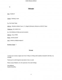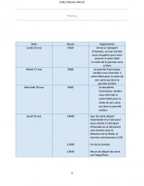 Jeudi 19 mai | 10h00 12h00 13h45 | Jour de votre départ réservation d’un taxi pour vous rendre à l’aéroport d’Haneda où se déroulera une réunion avec le directeur de la filiale, la réunion commencera à 10h Fin de la réunion Heure de départ de votre vol Tokyo/Paris |