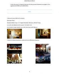- Un taxi est réservé à votre arrivée à Tokyo à 09h20 pour vous amener à votre hôtel. Le trajet durera 20 min.