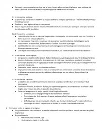 - Fort esprit communautaire imprégné par la force d’une tradition qui sert à la fois de base politique, de valeur cardinale, de source de sécurité psychologique et de réservoir de savoirs.