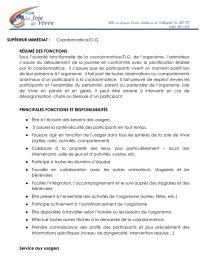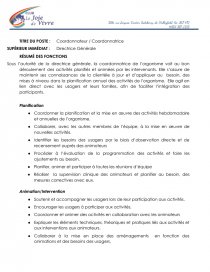 Sous l’autorité de la directrice générale, la coordonnatrice de l’organisme voit au bon déroulement des activités planifiés et animées par les intervenants. Elle s’assure de maintenir ses connaissances de la clientèle à jour et d’appliquer au besoin, des mises à niveau dans la planification annuel des activités de l’organisme. Elle agit en lien direct avec les usagers et leurs familles, afin de faciliter l’intégration des participants.