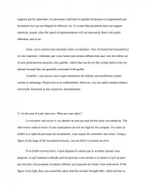 The recruiter wants to determine if you will be satisfied (e) of the proposed post, and if you will be effective in this position. Afin de le rassurer sur ce sujet, développez les points suivants : To reassure him on this subject, expand the following: