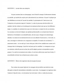 QUESTION 1 : recruter dans une entreprise.