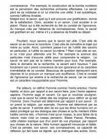 Malgré tout, le savoir, quel qu’il soit procure une gratification, donne de la satisfaction. Donc, accéder à un savoir, c’est accéder à un plaisir. Plaisir qui à été recherché du fait du constat de l'ignorance, du manque crée par l'absence de connaissances. Ainsi, le savoir est gratifiant en soi, même s’il y a absence de finalité au départ.