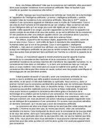 Dissertation philosophie : Peut-il y avoir une conscience artificielle ?