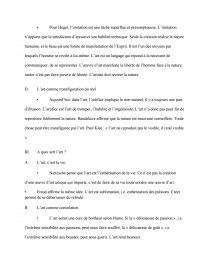 • Pour Hegel, l’imitation est une tâche superflue et présomptueuse. L’imitation n’apporte que la satisfaction d’éprouver son habilité technique. Seule la création réalise la nature humaine, et le beau est une forme de manifestation de l’Esprit. Il est l’un des moyens par lesquels l’homme se révèle à lui-même. L’art est un langage qui répond à la nécessité de communiquer, de se représenter. L’œuvre d’art manifeste la liberté de l’homme