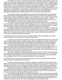 Si la technique est l’expression de l’humanité de l’Homme, elle est également l’expression de la maîtrise de la nature. En effet, le progrès, ayant une connotation positive, dépend de l’utilisation que l’on en fait. Si des personnes mal intentionnées se réapproprient les découvertes techniques à des fins néfastes alors, l’Homme se méfiera du progrès. La découverte de l’énergie atomique en est le parfait exemple quand elle est utilisée à des fins militaires.