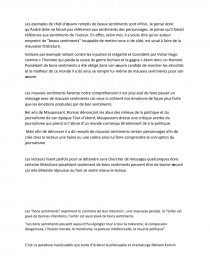 Voltaire par exemple luttant contre les injustice et inégalité et Considéré par Victor Hugo comme « l’homme qui plaida la cause du genre humain et la gagna » étant donc un Homme Possédant de bons sentiments a été obligé dans son œuvre candide de montrer les atrocités et le malheur de ce monde il a dû ainsi se remplir lui-même de mauvais sentiments pour son œuvre
