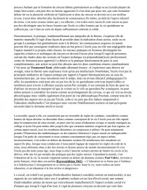 précoce.Sachant que la formation du citoyen débute généralement au collège ou au lycée(la plupart du temps bien avant), cela peut être un facteur aggravant.Ce n'est donc pas pour rien, que cette formation débute tôt car la plasticité cérébrale de l'adolescent et donc du citoyen en devenir est à son meilleur niveau, il peut donc absorber plus facilement de connaissances.De même, au-delà de l'aspect éducatif du terme, c'est notre essence même qui y est affectée, c'est-à-dire notre raison.Et cette raison ne peut pas être développée sans les bases fournies par l'école et celles fournies par la vie quotidienne ne suffisent pas, car il faut un socle de départ suffisamment cohérent et solide.