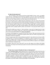 Emmanuel Levinas dans le texte 7, définit autrui pas seulement par « autre moi » mais « il est ce moi que je ne suis pas », autrui est donc un homme comme moi mais il n’est pas moi, il a sa propre conscience et j’ai la mienne. Ceci est évoqué dans le texte 4, de Gaston Berger où il affirme que « les autres ne peuvent violer ma conscience, mais je ne puis leur en ouvrir l’accès », donc chaque sujet a sa propre conscience qui n’est pas accessible aux autres. Mais comment expliquer alors le fait qu’autrui serait capable de me comprendre et donc en quelque manière accéder a ma conscience ? C’est ce que nous allons voir par la suite.