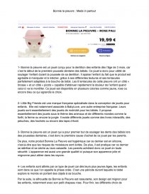 De plus, notre produit Bonnie La Pieuvre est hygiénique car ce dernier est en silicone, c'est-à-dire que les risques de moisissure sont évités. De plus, il est pratique car ce dernier se stérilise et se sèche au lave-vaisselle. Les parents achètent donc ce jouet en toute sécurité. L’apparence est aussi une grande qualité ici puisque son apparence jolie et mignonne peut attirer dans les rayons.