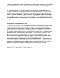 Le marché made in partout a tout autant d’aspects positifs que le made in France et a même des avantages effectivement sur le point économique le prix est souvent plus élevé en France de par le coût de production. Par exemple, la main-d'œuvre est plus coûteuse en France, cela va forcément impacter le prix du produit. De plus, un bas prix ne veut pas dire de mauvaise qualité. Le produit made in partout peut donc coûter moins cher que le produit made in France en étant de bonne qualité. De plus, le made in partout permet une large gamme de ressources avec des matières premières plus adaptées à la conception du produit, comme l'arbre Hévéa de Malaisie qui conçoit le jouet la pieuvre bonnie est utilisé pour son latex qui sert à fabriquer le caoutchouc. Sophie la girafe a beau être intergénérationnelle, son design reste le même depuis des années, ils n’innovent donc pas. Le physique de Sophie la Girafe est à choix unique. Bonnie la pieuvre quand a elle comporte plusieurs choix de couleurs. Son physique est donc plus original. C’est donc pour cela que notre choix se pencherait plus vers Bonnie la pieuvre que vers Sophie la Girafe.