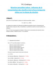 Le but de ce TP est d’étudier la vitesse de la réaction persulfate – iodure :