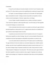 La cour de cassation dans son arrêt du 26 juin 1973 rejette le pourvoi en affirmant que "les juges du fond ont le devoir de restituer aux conventions litigieuses leur véritable caractère juridique, sans être liés par la qualification donnée par les parties et peuvent estimer qu’il n’y a pas contrat d’échange lorsque l’importance anormale de la soulte versée permet de la comme l’objet principal de l’obligation de l’une des parties". Elle estime ainsi que les juges du fond ont bien fait de requalifier le contrat en contrat de vente eu égard à l’importance de la soulte par rapport au bien échangé et de l’intention des contractants de faire échec au droit de préemption du tiers.