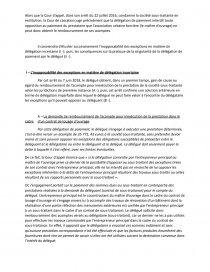 Le 8 juin 2017, la Chambre sociale de la Cour de cassation rend sa décision sur la base du nouvel article 1336 du Code civil, issu de l’ordonnance du 10 février dans lequel « Le délégué ne peut, sauf stipulation contraire, opposer au délégataire aucune exception tirée de ses rapports avec le délégant ou des rapports entre ce dernier et le délégataire ».
