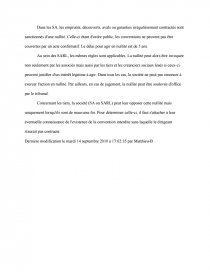 Dans les SA, les emprunts, découverts, avals ou garanties irrégulièrement contractés sont sanctionnés d'une nullité. Celle-ci étant d'ordre public, les conventions ne peuvent pas être couvertes par un acte confirmatif. Le délai pour agir en nullité est de 5 ans.