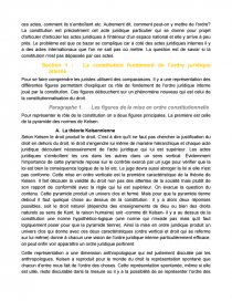 - Aborder la question à partir d'un texte juridique particulier en ce que la constitution contient l'ensemble des règles, principes et valeurs que la société à choisie. Ce texte est global et énonce des principes qui concernent toute la vie en société. Tout le droit repose sur les principes énoncés dans la constitution. Nous nous référons donc à un texte qui est composé de tout les principes sur lesquels une société se base et qui l'englobe. (1789 : « Toute société qui ne garanti pas de droits ni ne sépare les pouvoirs n'a pas de constitution »). La constitution est donc directement liée à une société et indique les droits que celle-ci garanti et dont les pouvoirs sont séparés.