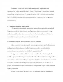 L’article 55 de la Constitution précise d’emblée que si toutes les conditions vues précédemment sont réunies alors le juge administratif doit lui aussi appliquer les normes internationales de façon a ce qu’elles soient supérieures aux lois. Cependant il a fallu que le juge administratif accepte d’apprécier la non conformité d’une loi à un traité.