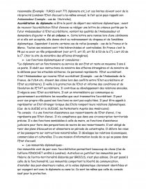 Accréditation du diplomate va être le point de départ ses relations diplomatique ; avant de recevoir l’accréditation l’Etat d’envoie va rédiger une lettre de créance portée par le futur Ambassadeur à l’Etat accréditaire, vantant les qualités de l’Ambassadeur et demandera d’ajouter « foi et créance ». Cette lettre sera remise lors d’une cérémonie et si elle est acceptée, elle donne droit au redressement du drapeau et de l’emblème diplomatique. Cependant il existe certains cas de refus (exemple : cas de la France et le Maroc. Toutes ses missions sont très hiérarchisées et centralisées. En France c’est le PR qui va avoir un rôle prépondérant (voir art 5, art 15, art 52 & 53 de la C°). L’art 20 de la C°. (Voir le site du ministère des affaires étrangères).