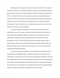 Le principe de légalité est fondamental, il limite notamment la liberté d'action de l'administration qui doit s'y soumettre et permet de ne pas basculer dans un Etat arbitraire. La France possède une organisation originale de ses tribunaux qui sont séparés en deux ordre juridictionnels, la justice judiciaire et la justice administrative. Au sommet de la justice administrative se trouve le Conseil d'Etat qui premièrement est juge de cassation et juge en première instance dans certains cas afin de trancher des litiges opposant l'administration et les administrés. D'autre part, ils est parfois saisi pour donner son avis. C'est un rouage central de l'organisation juridictionnelle française.