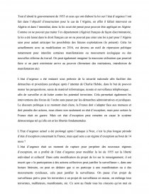 Tout d’abord le gouvernement de 1955 et ceux qui ont élaboré la loi sur l’état d’urgence l’ont fait dans l’objectif d’insurrection pour le cas de l’Algérie, en effet il fallait intervenir en Algérie et dans l’immédiat, donc la loi avait été pensé pour pouvoir être appliqué en Algérie. Comme on ne pouvait pas traiter l’ex département (Algérie) français de façon discriminatoire, la loi a été laissé dans le droit français car on ne pouvait pas créer une loi à part pour l’Algérie sans pour autant anticiper les possibilités des futures exploitations (le présent). Cette loi actuellement avec sa modification en 2016, est devenu un outil de répression politique notamment pour interdire certaines manifestations ou mouvement écologique ou des nouvelles réforme du travail. On peut également imaginer la mauvaise utilisation que pourrait faire si un parti extrémiste arrive au pouvoir (fermeture des institutions, interdiction de manifestation etc)