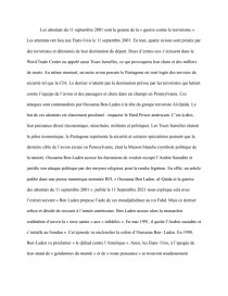 Les attentats du 11 septembre 2001 sont la genèse de la « guerre contre le terrorisme ». Les attentats ont lieu aux Etats-Unis le 11 septembre 2001. En tout, quatre avions sont piratés par des terroristes et détournés de leur destination de départ. Deux d’entres eux s’écrasent dans le Word Trade Center ou appelé aussi Tours Jumelles, ce qui provoquera leur chute et des milliers de morts. Au même moment, un autre avion percute le Pentagone où sont logés des services de sécurité tel que la CIA. Le dernier n’atteint pas la destination prévue par les terroristes qui luttent contre l’équipe de l’avion et des passagers et chute dans un champs en Pennsylvanie. Ces attaques sont commandités par Oussama Ben-Laden à la tête du groupe terroriste Al-Qaïda. Le but de ces attentats est clairement proclamé : impacter le Hard Power américain. C’est-à-dire, leur puissance direct (économique, sécuritaire, militaire et politique). Les Tours Jumelles étaient le pilier économique, le Pentagone représente la sécurité et certains spécialistes pensent que la dernière cible de l’avion écrasé en Pennsylvanie, était la Maison blanche (symbole politique de la nation). Oussama Ben-Laden accuse les étasuniens de vouloir occupé l’Arabie Saoudite et justifie son attaque politique par des moyens religieux pour la rendre légitime. En effet, un article publié dans une presse numérique nommée RFI, « Oussama Ben Laden, al-Qaïda et la genèse des attentats du 11 septembre 2001 », publié le 11 Septembre 2021 nous explique cela avec l’extrait suivant « Ben Laden propose l’aide de ses moudjahidines au roi Fahd. Mais ce dernier refuse et décide de recourir à l’armée américaine. Ben Laden accuse alors la monarchie wahhabite d’ouvrir la « terre sainte » aux « infidèles ». En mai 1991, il quitte l’Arabie saoudite et s’installe au Soudan ». Cet épisode va enclencher la colère d’Oussama Ben- Laden. En 1998, Ben-Laden va proclamer « le djihad contre l’Amérique ». Ainsi, les Etats- Unis, à l’apogée de leur statut de « gendarmes du monde » et de « toute puissance » se trouvent soudainement attaqués sans qu’un quelconque conflit ne soit déclaré en amont et le Président Bush déclarera la « guerre contre le terrorisme ». Pour lui, ils « ne feront aucune distinction entre les terroristes qui ont perpétrés ces actions et ceux qui les protègent ». Comme l’explique E.Tenenbaum dans son article « Vers la fin de vingt ans de guerre contre le terrorisme ? », 20 plus tard, les Etats-unis proclamerons